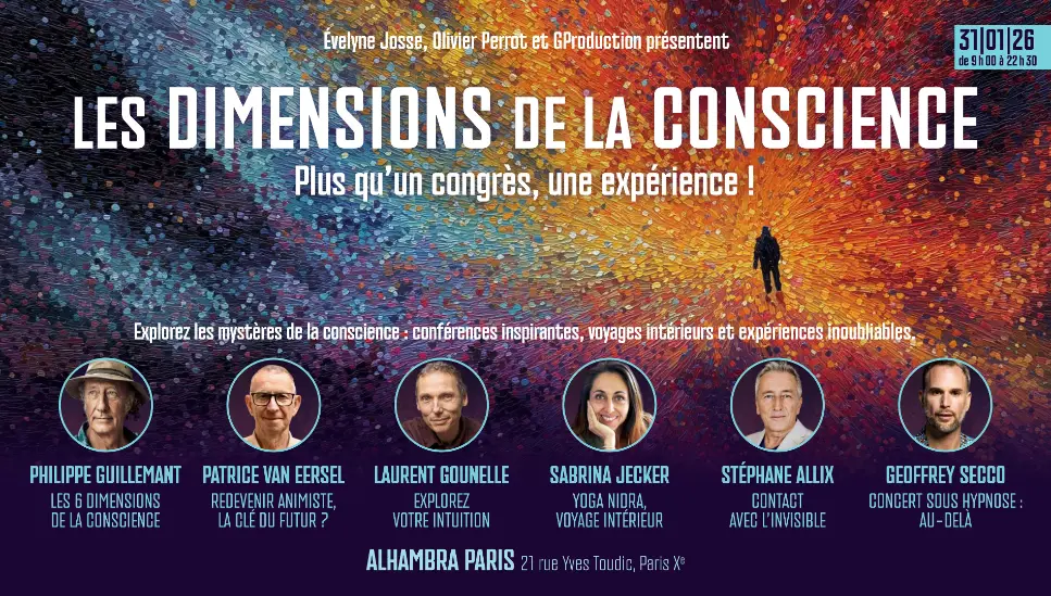 Le samedi 31 janvier, Clak Prod a posé ses caméras dans le mythique Théâtre Alhambra à Paris pour un événement hors norme : le Congrès Les Dimensions de la Conscience, clôturé par le célèbre concert sous hypnose du saxophoniste Geoffrey Secco.